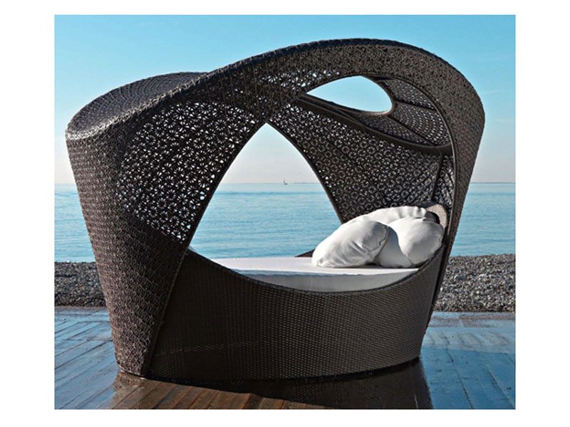 Ogromny, przypominający kołyskę lub łóżko mebel wykonany jest z aluminiowej struktury i ażurowego baldachimu otaczającego siedzisko. Altea&Alcove (czyli altanka i alkowa w jednym) pomieści w swoim przytulnym wnętrzu co najmniej dwie osoby. Chroni przed słońcem i wiatrem dają przy tym możliwość odpoczynku na świeżym powietrzu. Dla tych, którzy uważają, że duży może więcej.