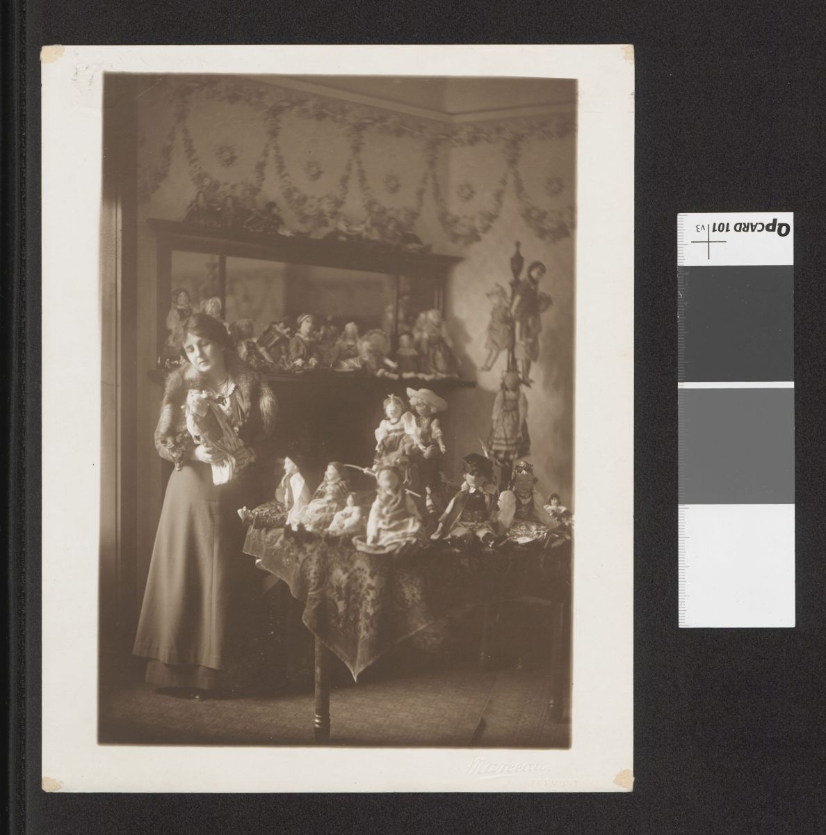 DI 96200/184 MNW; Marceau (Nowy Jork, Cincinnati, Indianapolis, San Francisco, Boston ; ca 1885-? ; studio fotograficzne) (zak³ad fotograficzny); Boston (Stany Zjednoczone); Helena Paderewska (1856-1934) z kolekcj¹ lalek sprzedawanych na rzecz Polish Victims Relief Fund; ok. 1915; odbitka fotograficzna; papier fotograficzny; 25,6 x 20,3