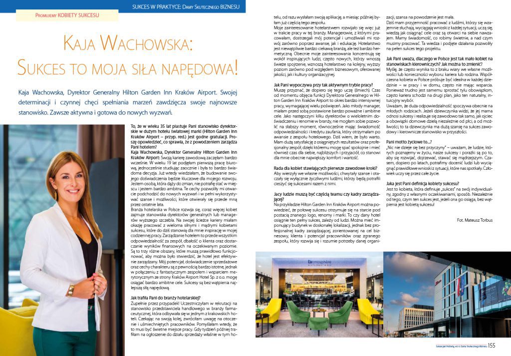 KAJA WACHOWSKA, Dyrektor Generalna HILTON GARDEN INN KRAKÓW AIRPORT. Bohaterka szóstej edycji książki „Sukces jest Kobietą”. Dziś opowie o sytuacji w polskim hotelarstwie, spowodowanej epidemią oraz o tym, dlaczego warto pomagać innym i mieć z tego radość i poczucie wdzięczności.