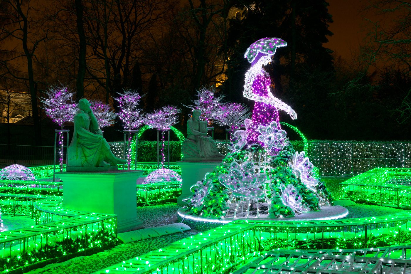 Królewski Ogród Światła to jesienno-zimowa wystawa, która rozświetla ogród przy pałacu w Wilanowie. Tysiące kolorowych diod ułożone są w taki sposób, aby oddawały barokowe wzory i kształty roślin. To propozycja na zimne i szare wieczory zarówno dla dzieci, jak i dla dorosłych!