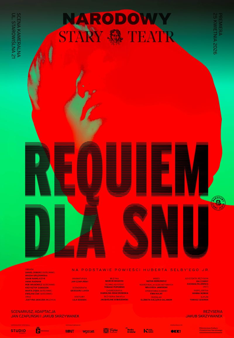 Skrzywanek wraz z Janem Czaplińskim – współtwórcą scenariusza i dramaturgiem, przenoszą na scenę historię, która od dekad pozostaje jednym z najmocniejszych artystycznych studiów uzależnienia, samotności i niespełnionych pragnień. Opublikowana w 1978 roku powieść Selby’ego opowiada o czwórce bohaterów, którzy – próbując spełnić swoje marzenia – popadają w różne uzależnienia. Historia ujawnia mechanizmy autodestrukcji, w których pragnienie lepszego życia stopniowo przekształca się w pułapkę, prowadzącą do izolacji i osobistej katastrofy. Requiem dla snu zyskało międzynarodową rozpoznawalność dzięki filmowi Darrena Aronofsky’ego o tym samym tytule.