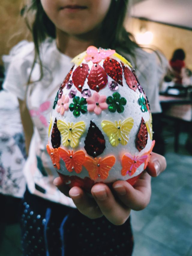 • Świąteczne animacje dla dzieci – wspólne dekorowanie jaj Wielkanocnych cekinami