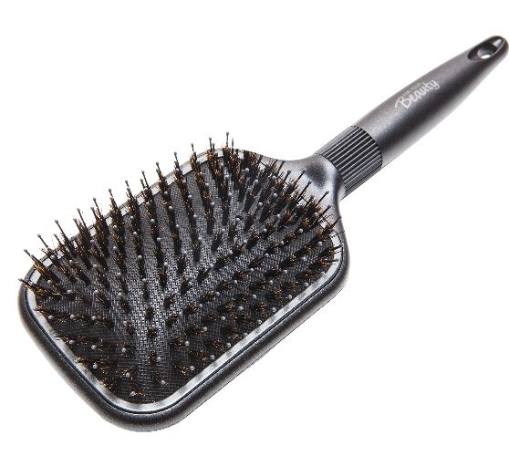 Czyści włosy i pielęgnuje je nadając im jedwabisty połysk. Połączenie gęsto osadzonego włosia naturalnego i nylonowego o różnej długości umożliwia dokładne rozczesanie włosów. Szczotka usuwa resztki produktów do stylizacji włosów, takich jak lakiery, żele czy pianki. Cena: 26,99 zł