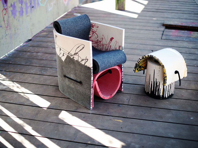 Fotele Rough&Ready zostały wykonane ze zszytych ze sobą płatów wełny o różnej grubości, a cała konstrukcja wzmocniona za pomocą liny. Wełna użyta przez projektantkę wyróżnia się bogactwem kolorów i nadaje meblom lekki, wesoły charakter. Misternie wykonana konstrukcja sprawia wrażenie zrobionej zgodnie z zasadą DIY (Do It Yourself). Wszystkie meble z kolekcji Rough&Ready są elastyczne i mogą być modyfikowane w zależności od życzeń klienta. Na zdjęciach prezentujemy modele Mr Easy, Sidekick i Mr Soft.