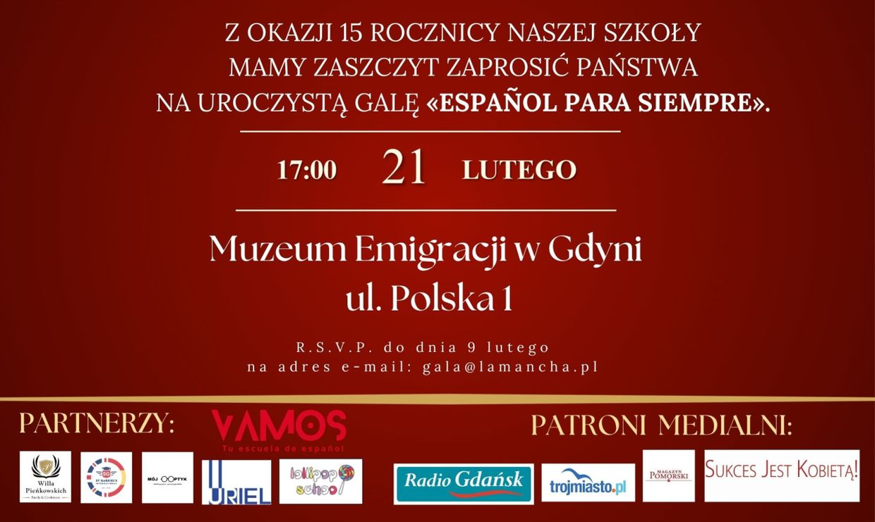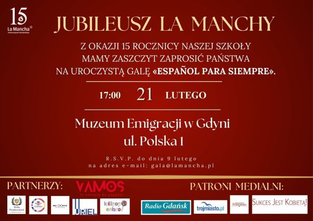 21 lutego 2026 roku w Muzeum Emigracji w Gdyni odbędzie się Gala zatytułowana „Hiszpański na zawsze”, przygotowana z okazji 15-lecia istnienia szkoły La Mancha.