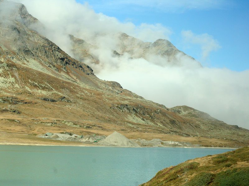 Już po kilkunastu kilometrach podróży, kiedy opuszczamy bajecznie zielone pagórki w okolicach Davos, jasne staje się, że to nie przelewki… Kolejka przejeżdża wąskimi półkami skalnymi wydrążonymi na zboczu góry, po kilkunastu małych mostkach zawieszonych pomiędzy przepaściami, wjeżdża w kręte tunele wydrążone w skałach i wspina się coraz wyżej, przyprawiając niewprawionych pasażerów o palpitacje serca. Pierwszą atrakcją na trasie jest wiadukt Wiesner długi na 204 metry i dodajmy, bardzo, bardzo wąski. Kilkanaście sekund później opuszczamy scenerię rodem z filmów o słynnym agencie 007 i ruszamy ostro pod górę. Tory zostały zaprojektowane w taki sposób, że spiralnie wznoszą się wzwyż, co sprawia, że widzimy tę samą dolinę z różnych stron, a czasami wyjeżdżając z ciemności tuneli stykamy się oko w oko z ośnieżonymi szczytami gór. Projektanci zastosowali takie rozwiązanie techniczne, bo pociąg na krótkim odcinku pomiędzy Bergun a Predą musi pokonać wzniesienie o wysokości 416 metrów. Szwajcarzy, naród ludzi cieszących się opinią raczej poukładanych, potrafią zaskoczyć poczuciem humoru. Przy jednej z dróg samochodowych, która majaczy w oddali wąską nitką, ktoś postawił rzeźbę w kształcie ogromnych dziecięcych sanek, a kiedy w wagonach pojawia się „pan bufetowy” ciągnie za sobą wózek z przyczepioną do niego ogromną głową kozicy. Przed nami najwyżej położony w Alpach (jesteśmy już prawie na wysokości Kasprowego Wierchu) 6 km tunel, który prowadzi przez miasteczko Samedan (ktoś wpadł na pomysł zbudowania tu lotniska, dzięki czemu zyskało miano najwyżej położonego w Europie) w kierunku skąpanego w ostrym słońcu, snobistycznego St. Moritz. Słynny kurort położony wśród majestatycznych szczytów i jezior robi wrażenie godne cen miejscowych hoteli, tymczasem pociąg mknie dalej przez rozległą dolinę pełną małych rzeczek, malowniczych polanek, nad którymi unosi się mgła i jesiennych lasów zachwycających całą feerią barw – od ciepłych żółci i czerwieni po ciemny brąz.