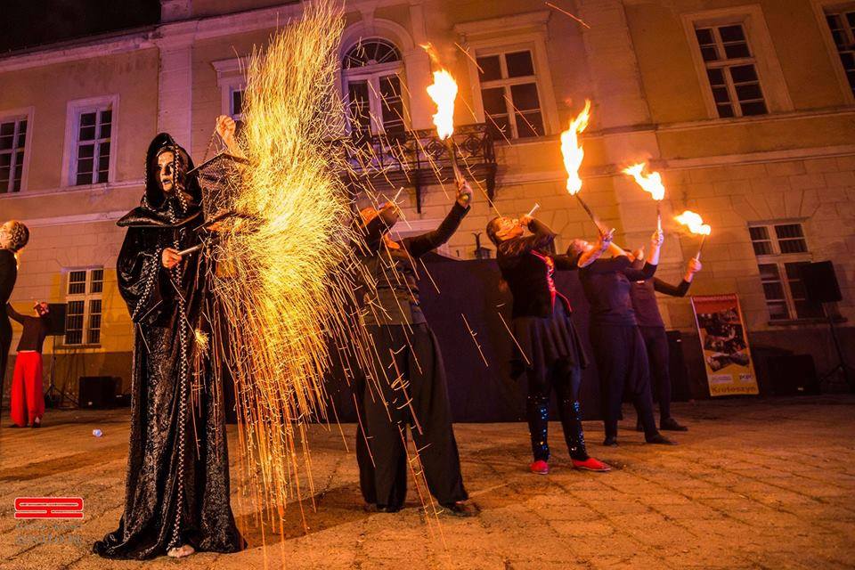 Zdjęcie wykonane podczas plenerowego spektaklu ,,Veni, vidi wici,, będącego połączeniem Giant Puppet i Fire Show na podstawie mitu o Arachne. Reżyseria Joanna Stanowska. Krotoszyński Festiwal Ognia.